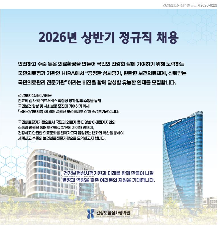 2026년 상반기 건강보험심사평가원 정규직 채용 공고