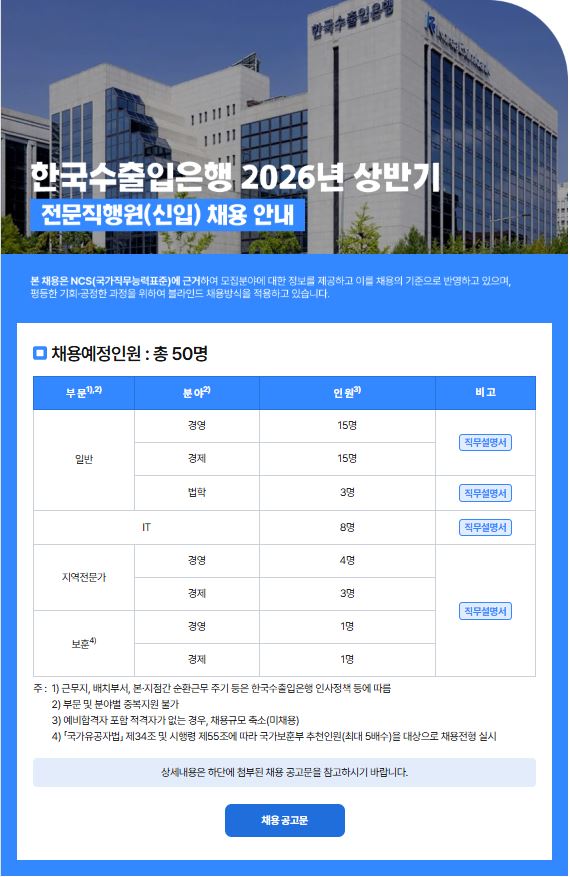 2026년 상반기 한국수출입은행 전문직행원(신입) 채용공고