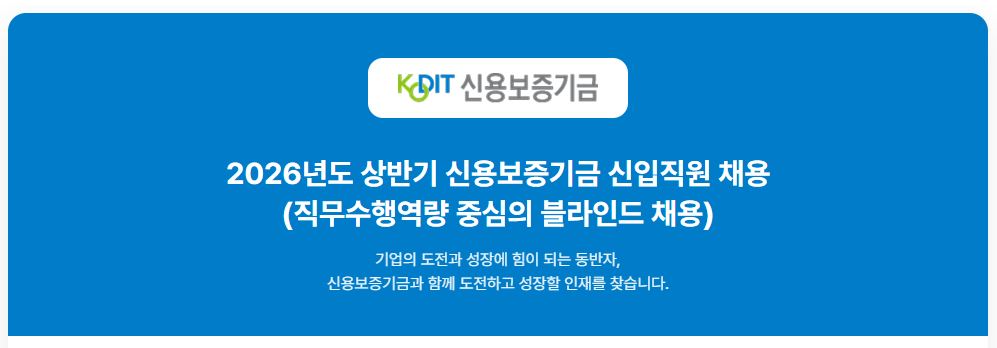 2026년 상반기 신용보증기금 신입직원 채용 공고