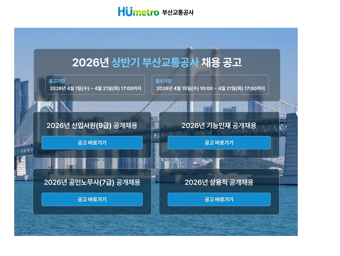 2026년 상반기 부산교통공사 신입사원(9급) 공개채용 공고