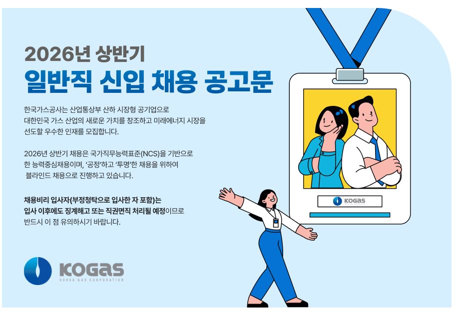 2026년 상반기 한국가스공사 일반직 신입 채용 공고